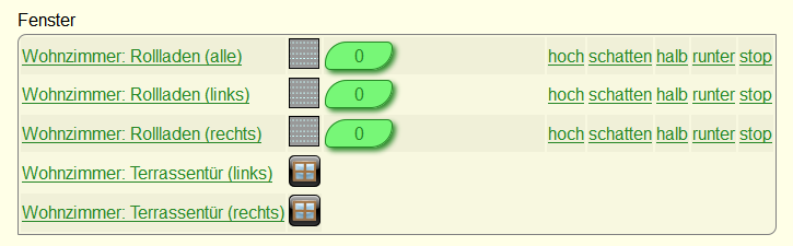 (Der erste Eintrag in der Abbildung ist eine Zusammenfassung zur gemeinsamen Steuerung aller Rolladen im Zimmer. s. structure)