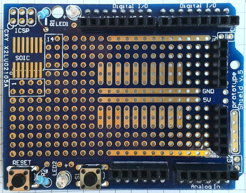 Wen man ein eigenes Shield für Arduino bauen möchte, bietet diese Platine eine gute Grundlage dafür.