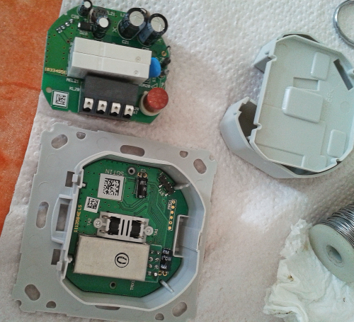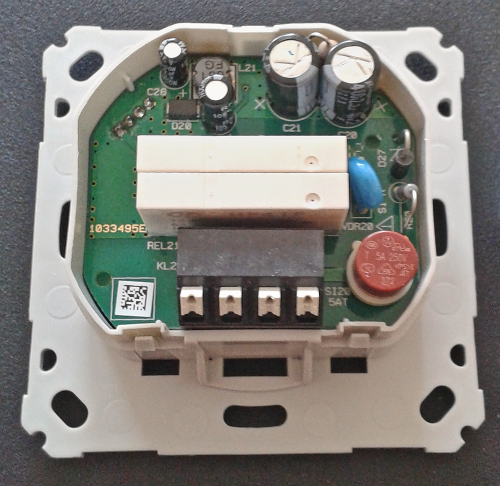 Die vorhandenen Schalter wurden durch diese Aktoren ersetzt, die vorhandenen Wippen und Rahmen konnten weiter verwendet werden. (Die Adapter zur Integration in bestehende Schalterprogramme müssen zusätzlich bestellt werden.)