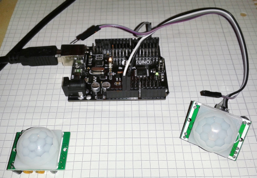 Die Verwendung mit dem Arduino ist denkbar einfach. Außer Betriebspannung ist lediglich der Ausgang an einen beliebigen digitalen Arduino-Pin anzuschließen und dessen Zustand auszuwerden. Bei einer erkannten Bewegung setzt der Sensor die Ausgangsleitung auf HIGH.