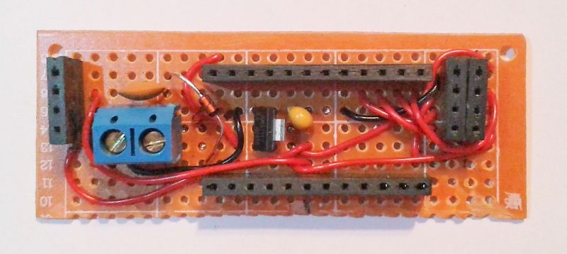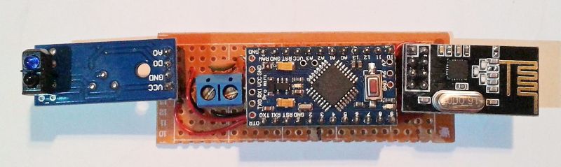 Heute kam der nächste auf dem MySensors System basierte Sensor zum Einsatz. Diesmal war das Garagentor dran. Da es sich um ein Einzelstück handelt, wurde dieser auf einer Punktrasterplatine aufgebaut, eine professionell angefertigte PCB hätte sich hier nicht gelohnt.